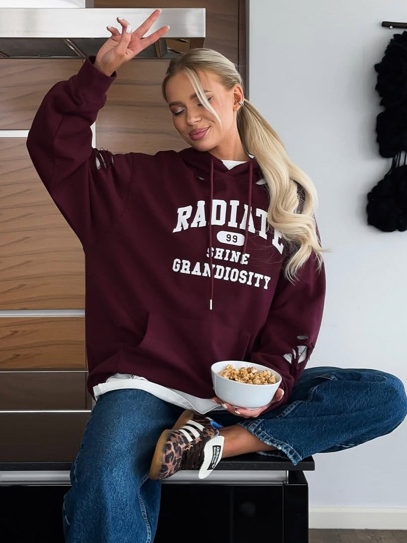 Ins Style Retro Hottie Letter Print Dress Girl Spring New Rotten Hooded Loose Top HZ1208
