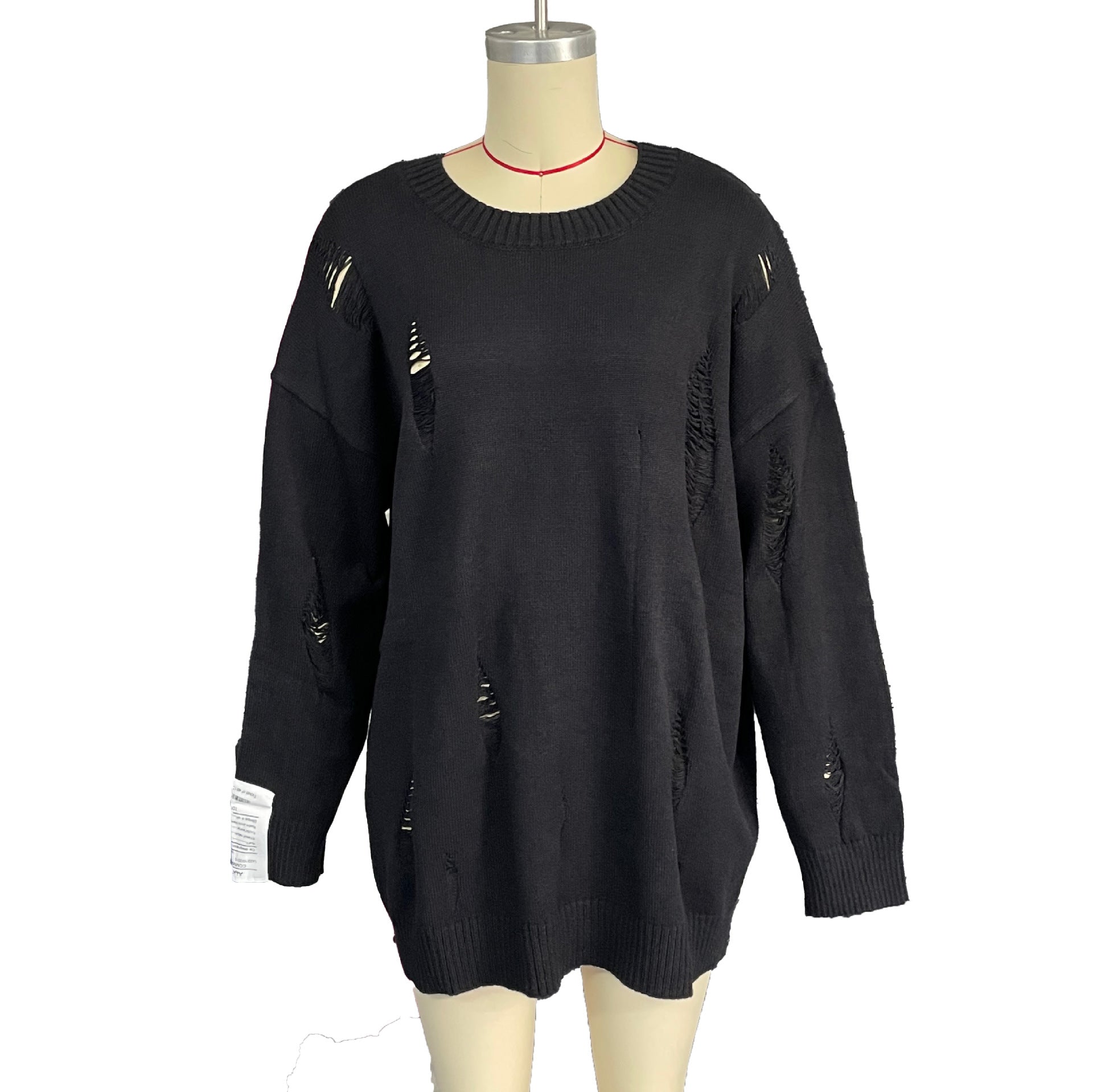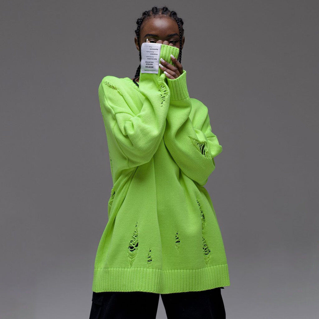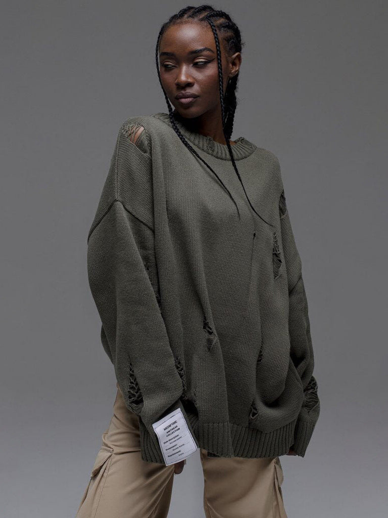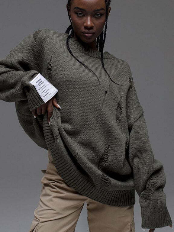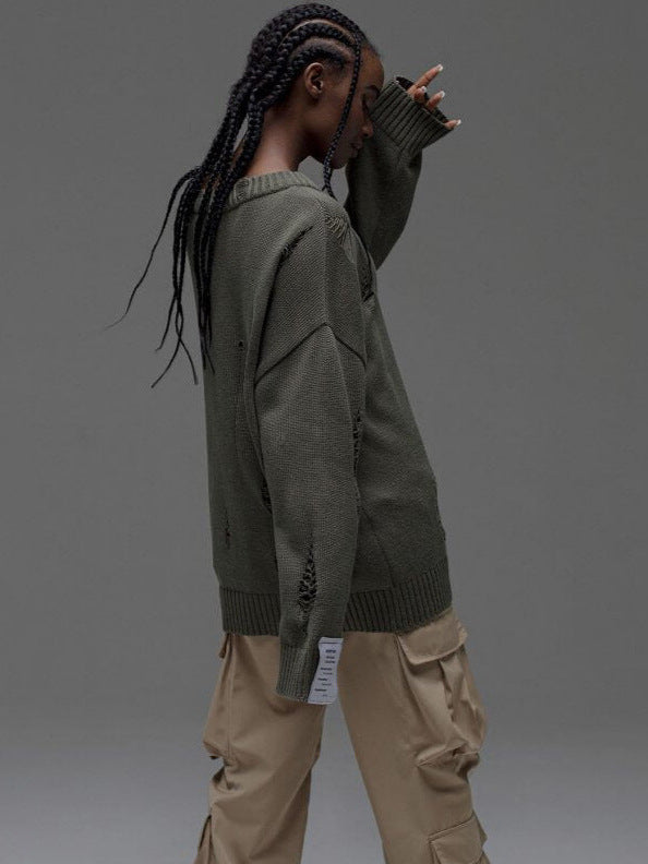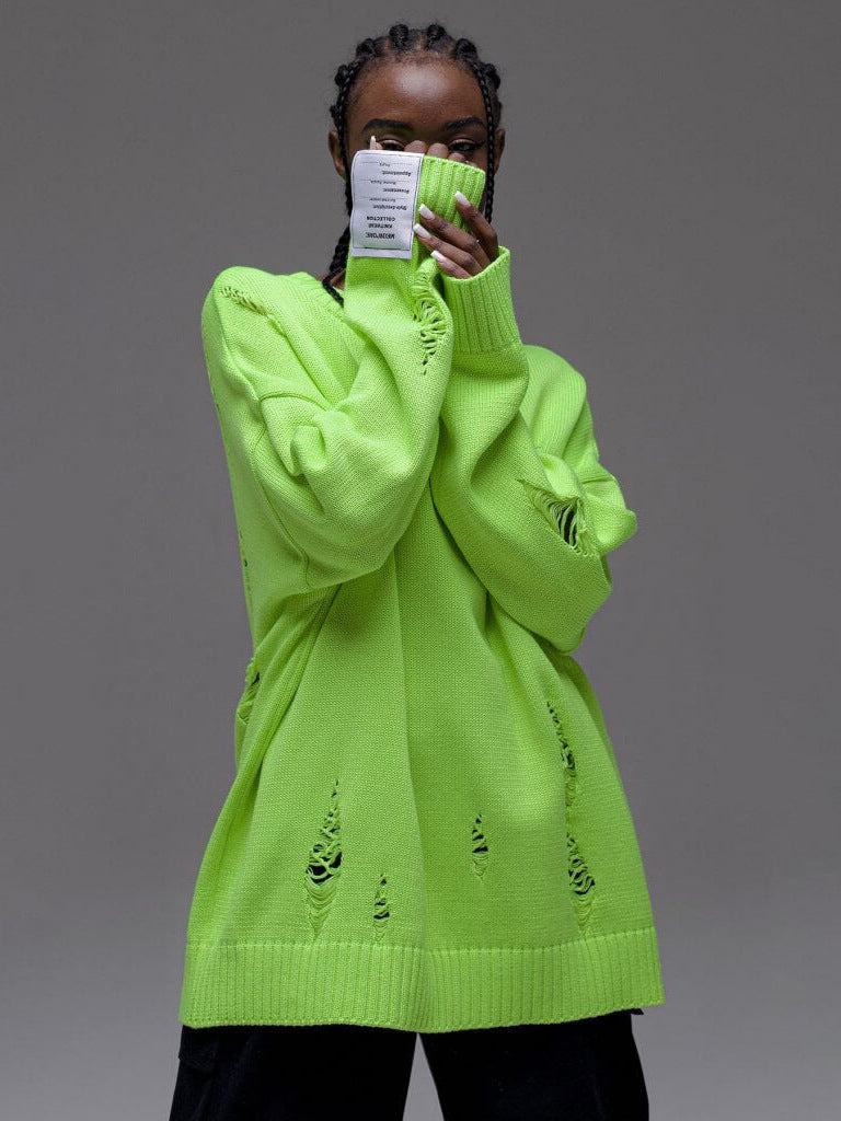 Personality Wind White Label Decoration Rotten Sweater Women Lazy Wind Loose Long-Sleeved Hot Girls Autumn And Winter Clothes Women HZ1208