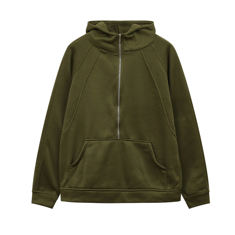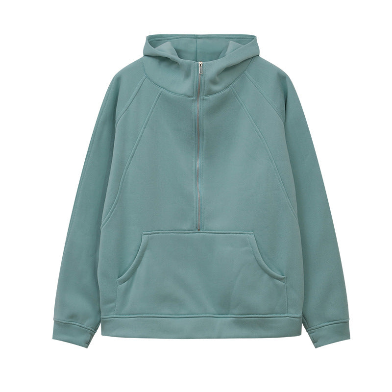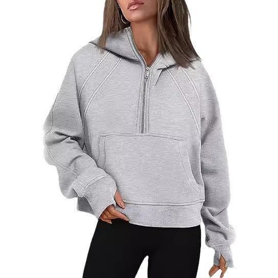 2025 Autumn And Winter New Fashion Leisure Sports Semi-Zip Hooded Short Plus Velvet Wear HZ1220